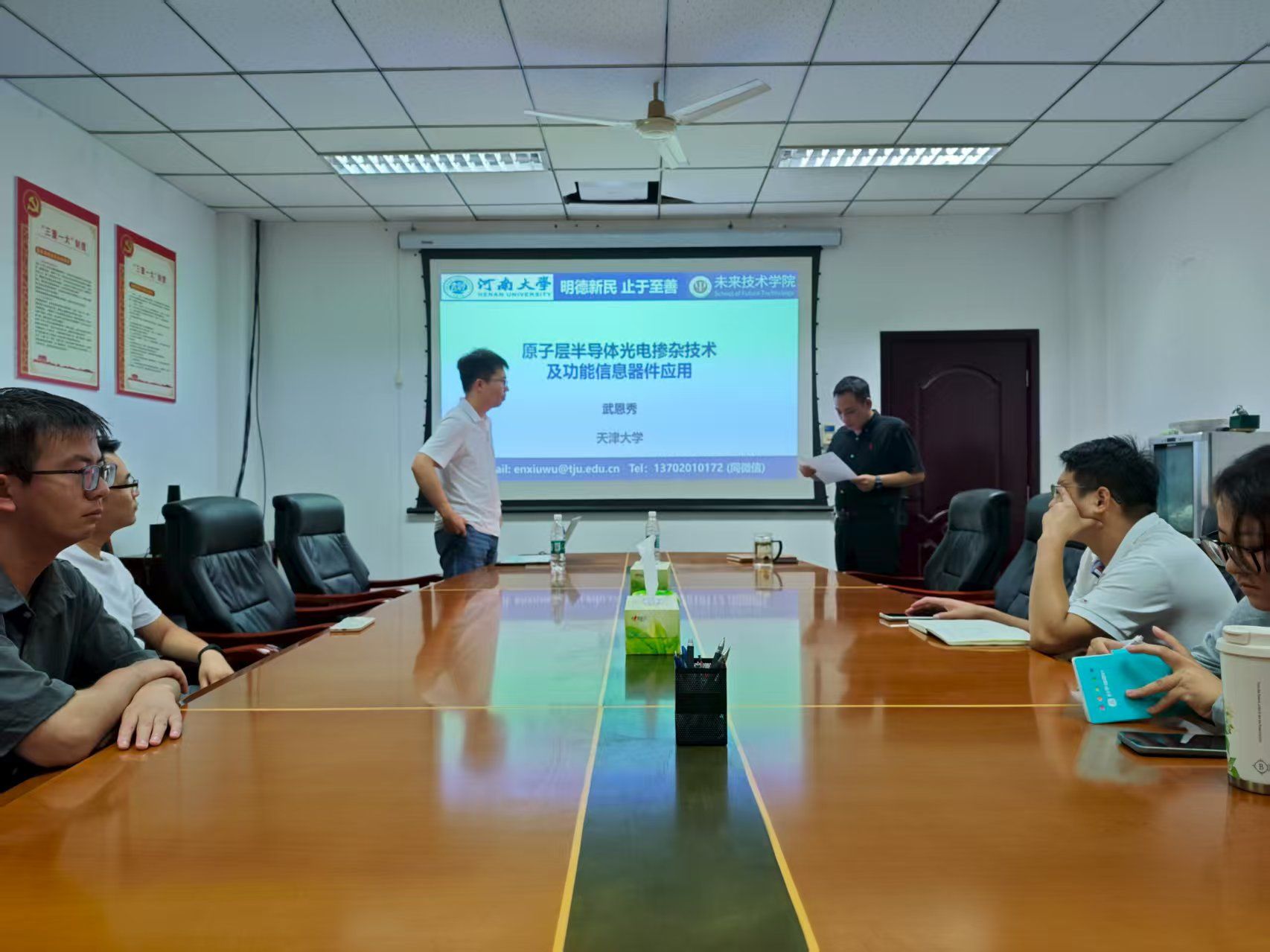 On September 15, 2025, Associate Researcher Wu Enxiu from Tianjin University was invited by the center to conduct academic exchanges. Researcher Wu Enxiu delivered an academic report titled "Two-Dimensional Atomically Layered Semiconductor Photoelectronic Doping Technology and Its Application in Novel Information Devices". The report was chaired by Professor Chen Ke, and teachers and graduate students from the center attended the presentation.